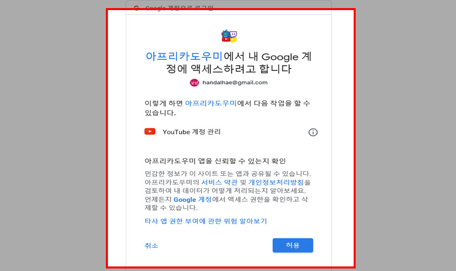 로그인을 하면 되고~ 나중에 필요 없을때는 연동 아이디 삭세를 해주시면 됩니다. 유투브 로그인을 눌러서 로그인을 합니다.